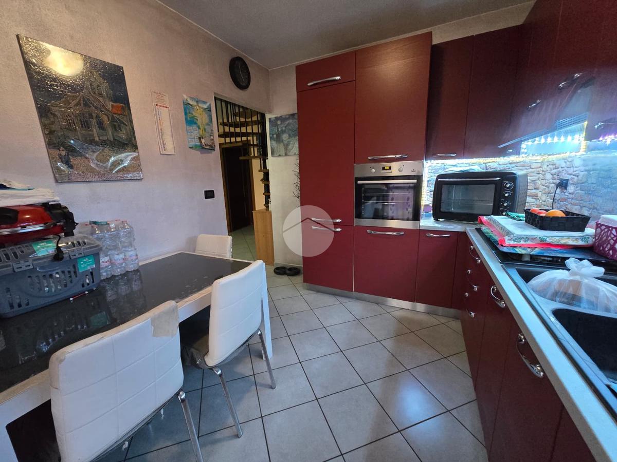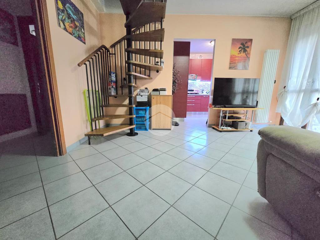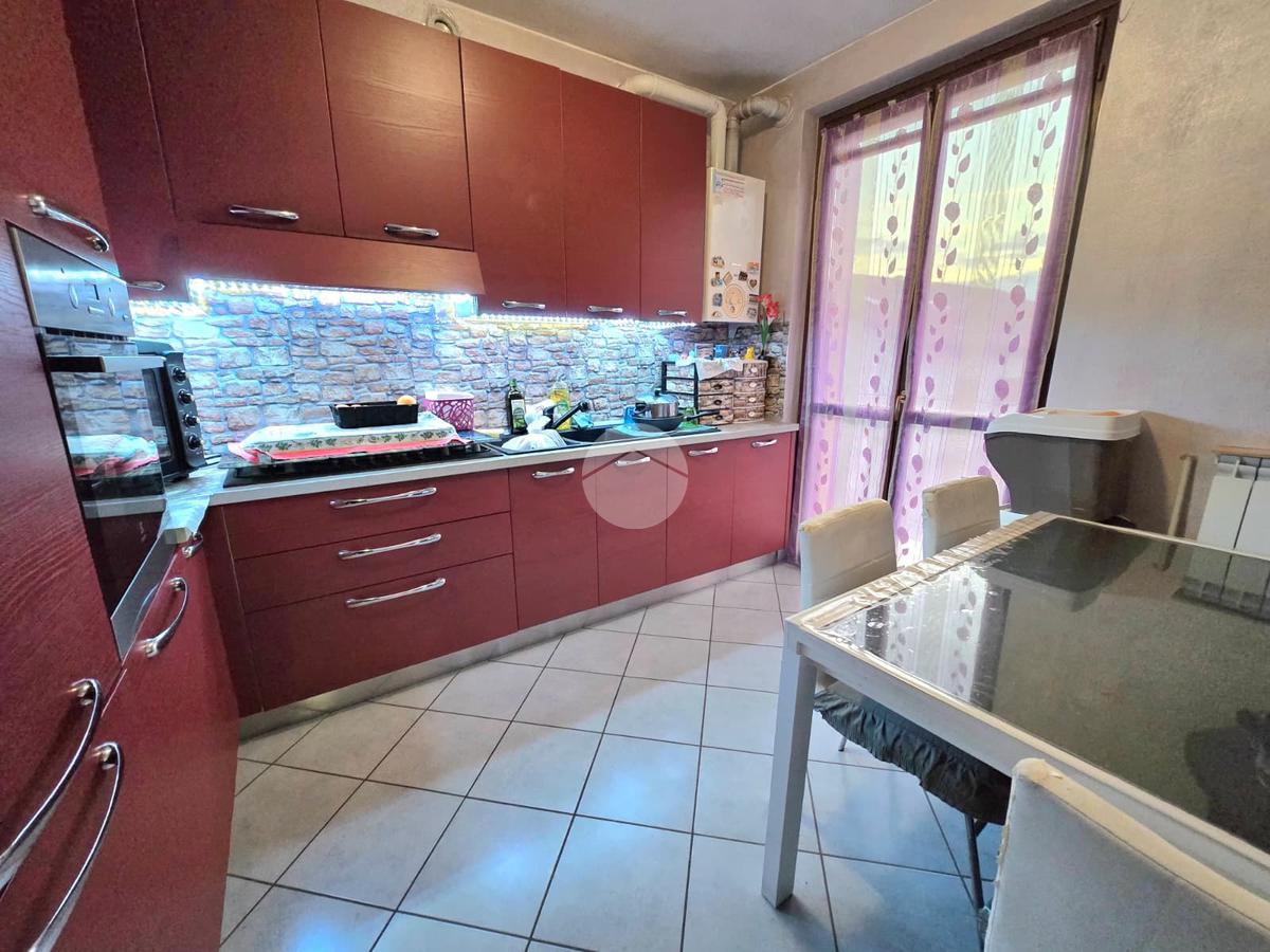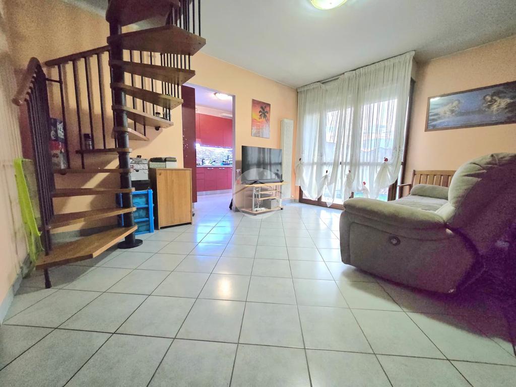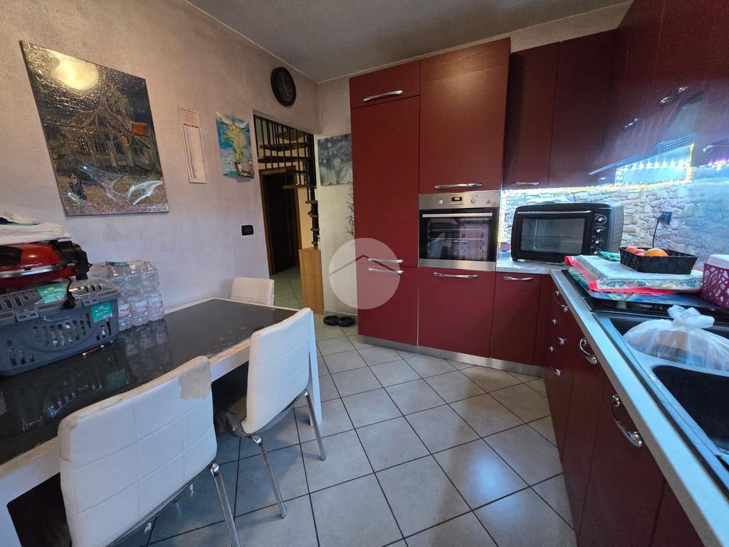 L’ingresso si apre su un accogliente soggiorno, esposto a ovest, che permette l’accesso a un terrazzino con una vista incantevole sulle montagne, perfetto per rilassarsi all’aria aperta. La cucina, separata e abitabile, offre uno spazio comodo per pranzi e cene in famiglia ed è collegata tramite una porta finestra a un balcone, pratico e riservato.
