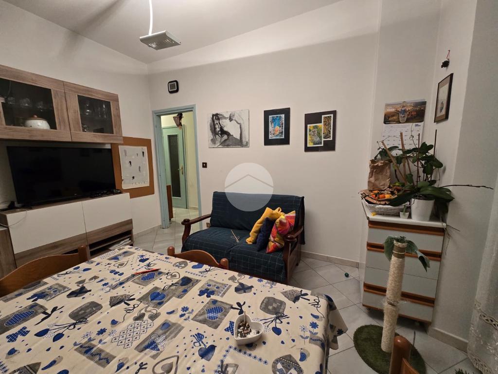 L’ingresso conduce a tutti gli ambienti della casa. La zona giorno, ampia e ben distribuita, è composta da soggiorno e cucina in unico ambiente, dotata di finestra e porta-finestra con accesso al balcone.